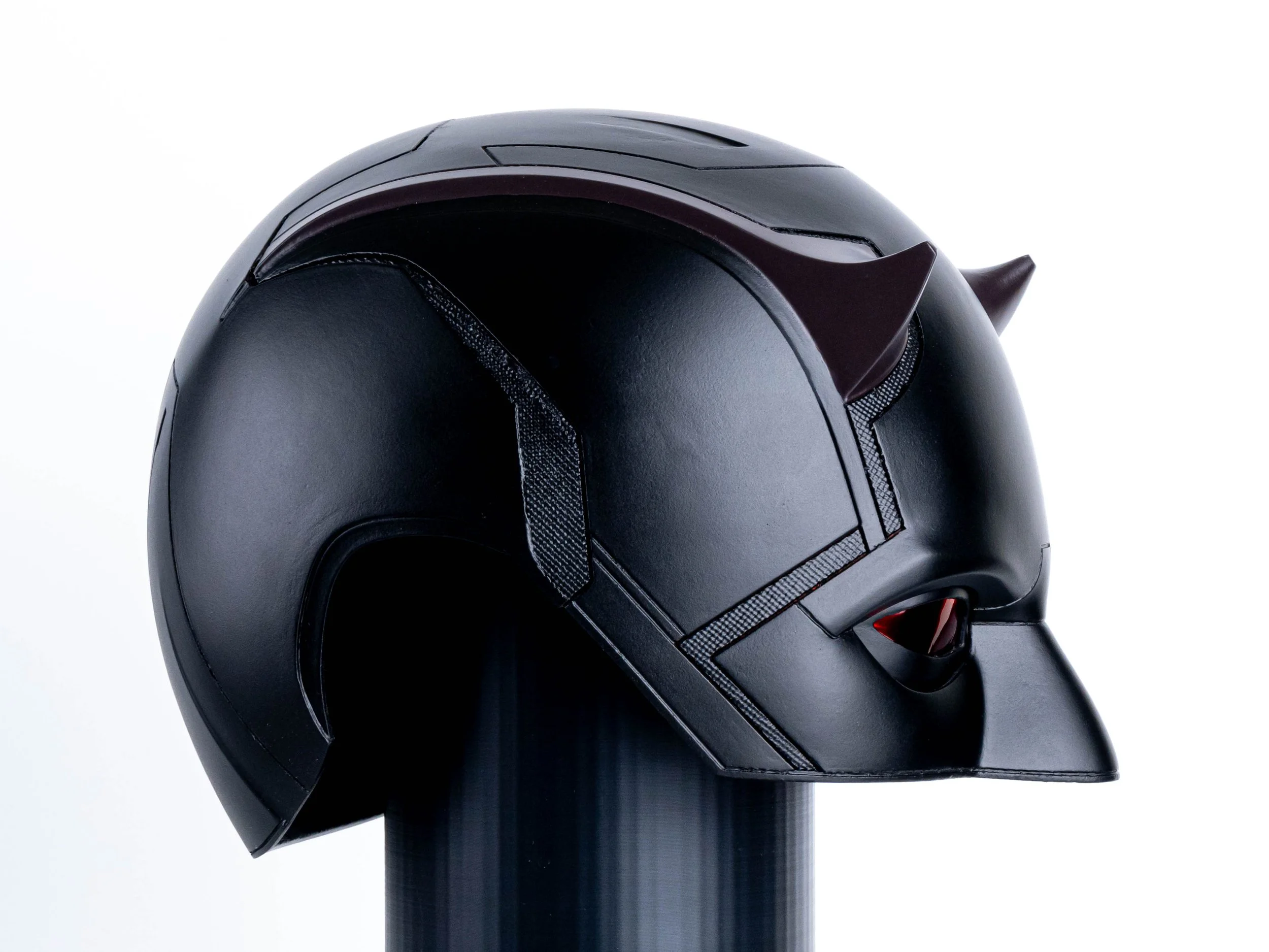 Daredevil: Born Again “Shadowland” version 2 inspired cowl at life-size, wearable scale. For information regarding our V1 & V2 options, please watch this video prior to completing check out! Files are by Vek3D.